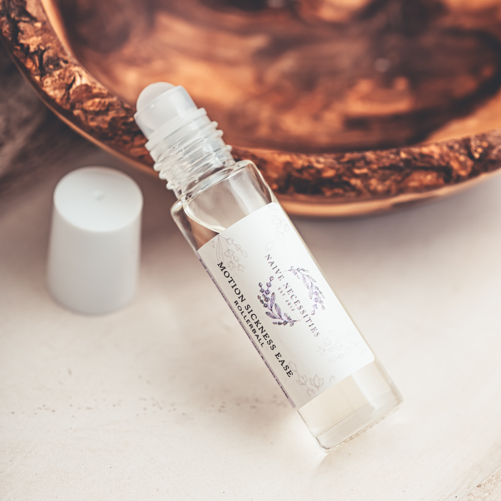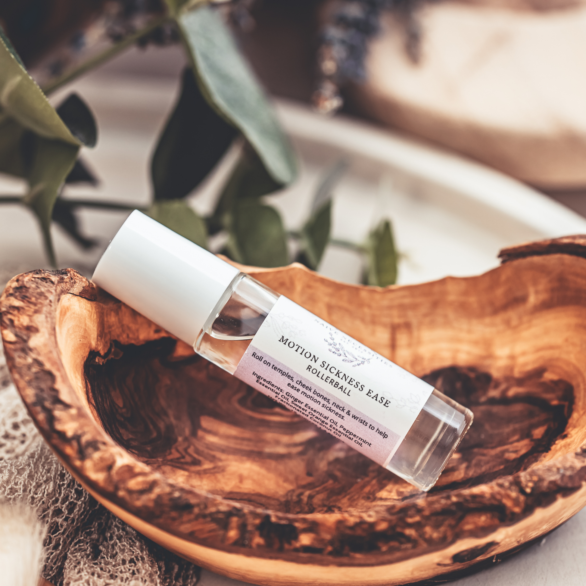 Motion sickness ease essential oil rollerball is a strong blend of ginger, peppermint and sweet orange and has helped my motion sickness so much! I was always car sick... Until this amazing blend! Safe to use on children as well! You can apply it to your skin or just sniff it to ease sickness. This one is a lifesaver! The reviews I have received from it are amazing.